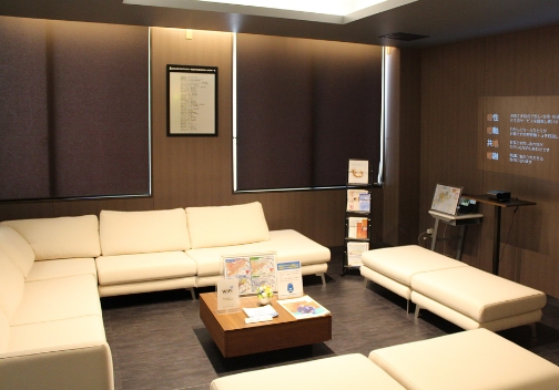 - お客様に最適なソリューションをご案内する大画面のモニター付きプレゼンテーションスペースです。その他、TV会議システムも利用でき、情報量豊富な24時間対応の弊社コールセンターの活躍をご覧いただくことができます。